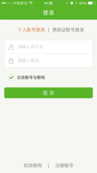 1 下载应用完成后,进入如下登录界面,点击“借阅证账号登录”