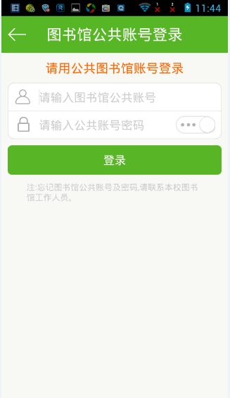 2、进入公共账号登录页面,请输入图书馆公共账号和密码,点击登录。