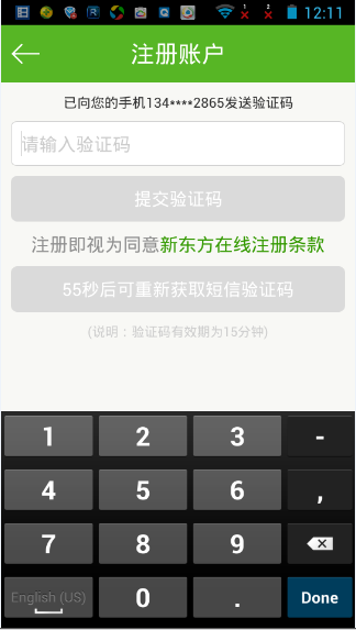 2)如果提示“该手机号已经被注册”,说明您的手机号之前已经注册成为了“新东方在线”的用户。请换一个手机号码注册,作为找回密码之用。