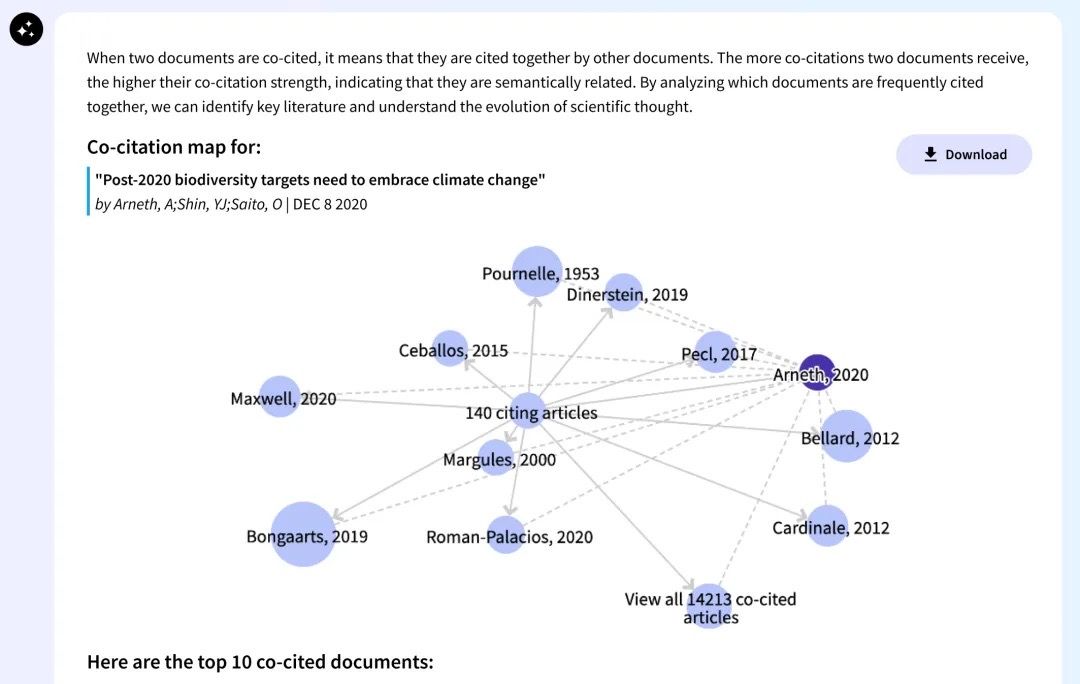 灵活的文献检索——用户可使用多种语言进行自然语言检索。该工具可在指定的研究领域内,根据超过120年的科研文献提供综述,揭示概念与论文间的关联。