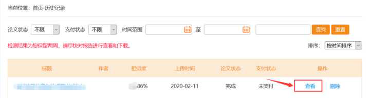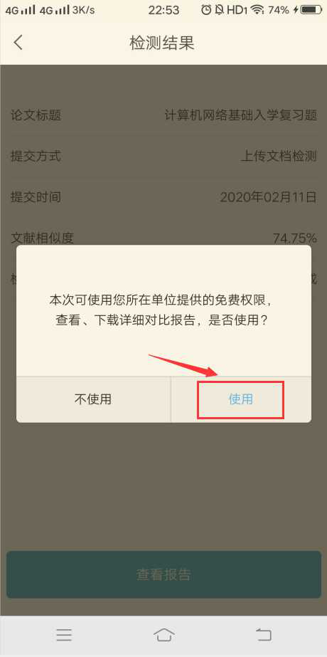 3、上传需要检测的文献,并通过“使用”免费权限的方式查看检测报告