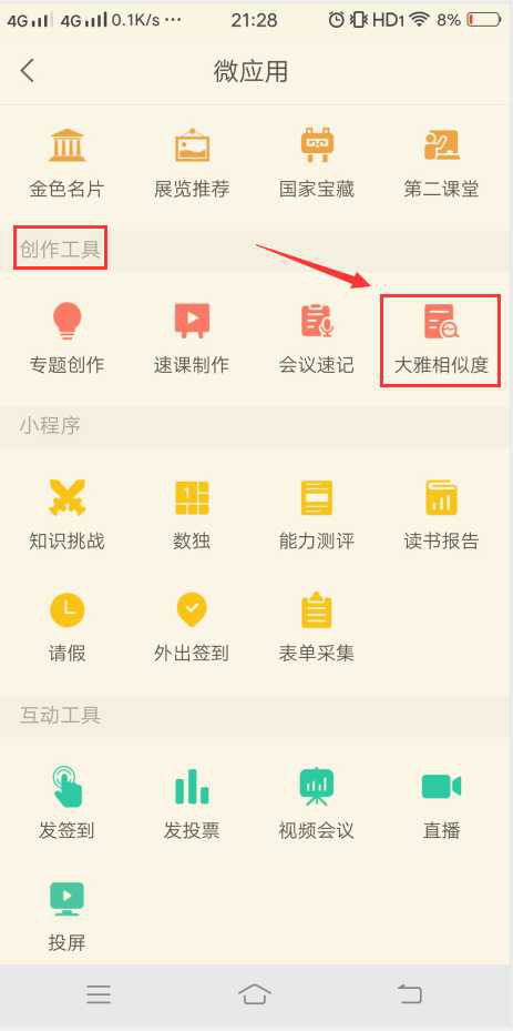 2、在创作工具中找到“大雅相似度”(或者在首页中找到“论文检测”微应用)