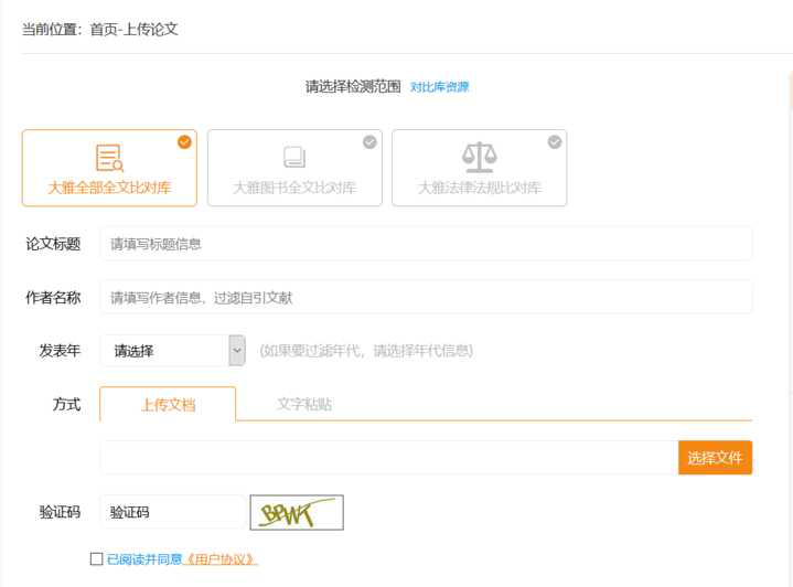 2、上传需要检测的文章