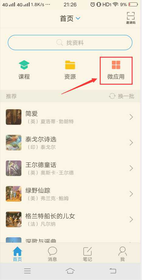 1、学习通首页访问“微应用”