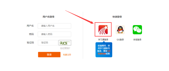 1、访问网址http://user.dayainfo.com/(提示:点击学习通图标使用学习通账号登录,其他账号不免哦)