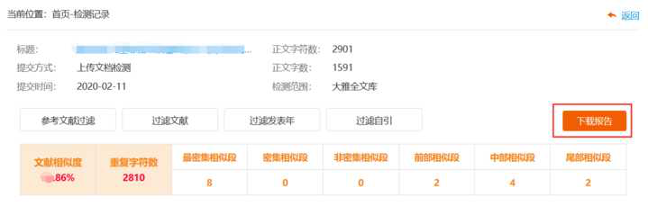 4、使用免费权限查看及下载检测报告