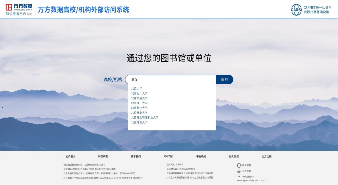 1、使用非校园IP地址打开浏览器,输入https://fsso.wanfangdata.com.cn