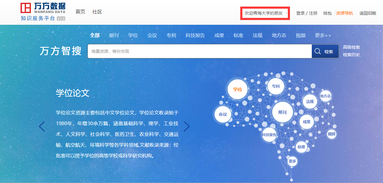 2.输入并选择所在学校,“青海大学”点击前往