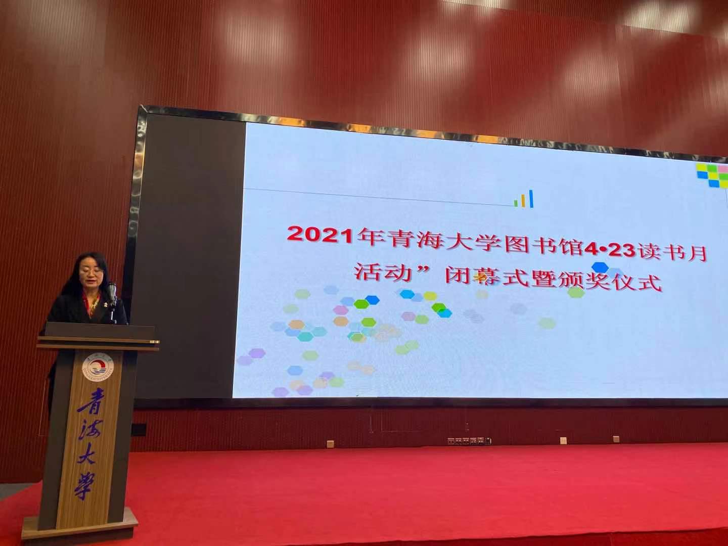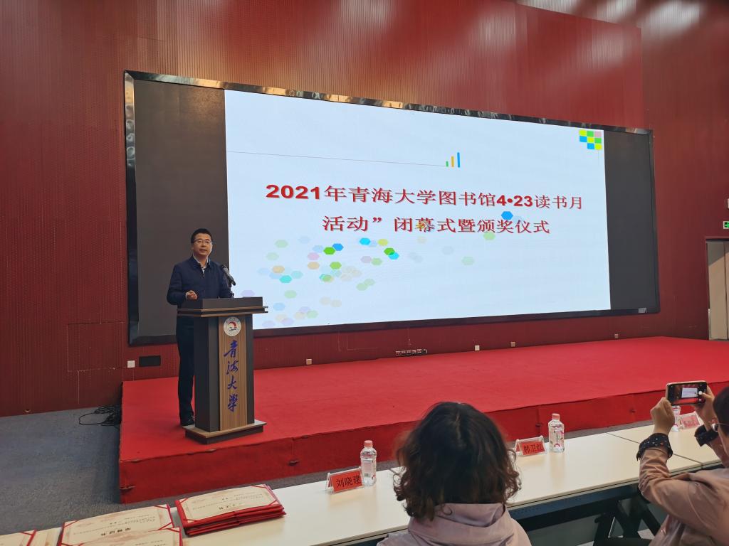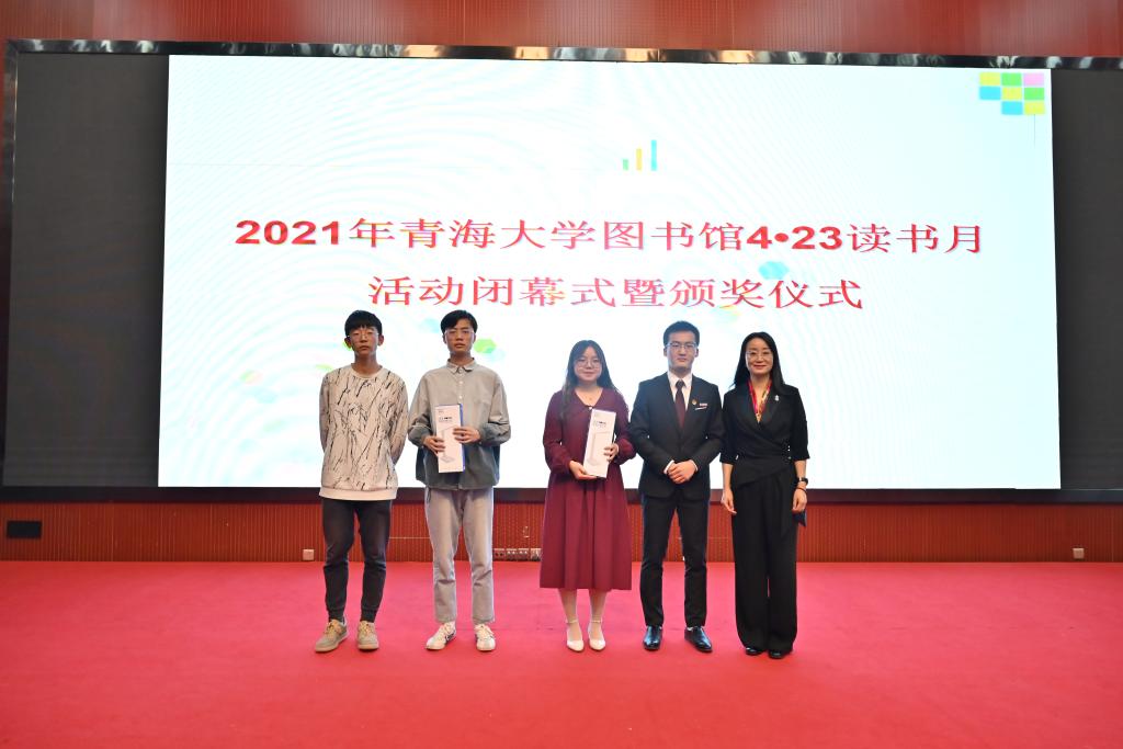 2021年是中国共产党建党100周年,百年诞辰,风华正茂。在迎接党的百年华诞之际,图书馆结合第26个世界读书日,以“阅读红色经典、传承革命精神”为主题,开展学习党史、新中国史、改革开放史、社会主义发展史的读书活动,引导学生树立远大理想,树立正确的社会主义荣辱观,坚定为中华民族的伟大复兴贡献青春的信念,从而实现自己的人生价值,创造辉煌的人生。经过一个月的读书月系列活动终于落下了帷幕。5月25日,在图书馆学术报告厅举办了“2021年青海大学图书馆4•23读书月活动闭幕式暨颁奖典礼。