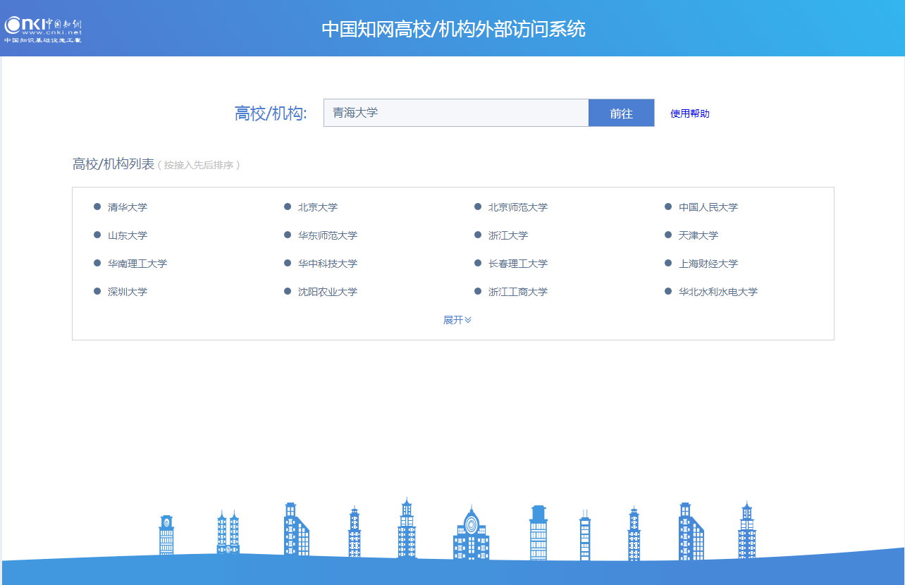 1、输入网址https://fsso.cnki.net,在页面上的“高校/机构”编辑框中输入“青海大学”点击“前往”按钮。