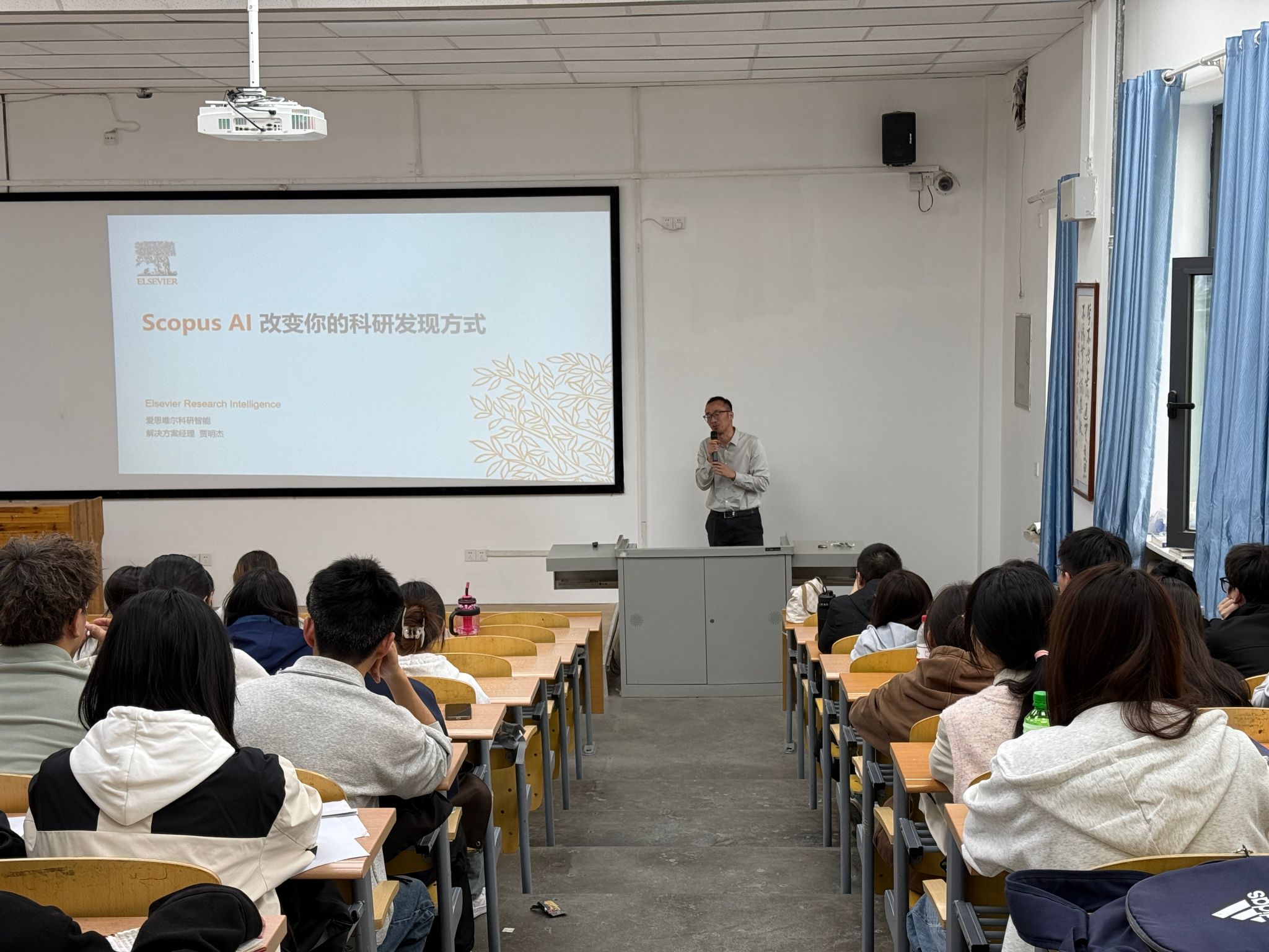 4月16日下午,青海大学图书馆邀请爱思唯尔解决方案顾问贾明杰老师,在青海大学医学院东楼阶梯教室举办了名为《Scopus AI——改变你的科研发现方式》的培训讲座。讲座由图书馆韩卫红老师主持。讲座围绕如何利用“学术型AI”工具帮助师生提升科研和学习效率展开。贾明杰老师从如何使用Scopus AI数据库开展一个课题研究、学术AI工具与通常AI工具的异同,以及如何负责任地使用AI工具三个方面,深入浅出地介绍了在当前AI工具已经得到广泛应用的背景下,学校师生在学术和科研场景中正确地使用AI工具,提升科研和学习效率,获得了现场参与讲座同学的认可。本次培训讲座共有逾100名同学参加,有部分同学专门从校本部来到医学院校区参加,并在培训结束后进一步与贾老师展开了关于AI工具应用的讨论。他们表示,Scopus AI的应用能够改变目前查阅文献、从文献中获取知识的方式,进而显著提升他们的科研效率。同学们也认识到,Scopus AI与Deepseek这类通用AI工具之间的不同,在学术和科研场景中,Scopus AI能够提供更为可靠的信息和结论。