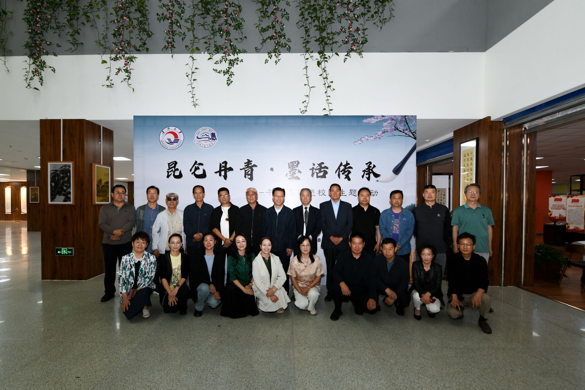 为深化美育浸润校园行动,厚植“以美育人、以美化人、以美培元”的文化土壤,7月8日上午,校图书馆联合青海省西海书画院、民建青海省委书画院、民盟青海大学委员会、民建青海省委青海大学支部、校人文学院,共同举办传统文化进校园之“昆仑丹青·墨话传承”主题活动。校党委常委、副校长张爱儒教授、民建青海省委组织部部长杨慧琳、校宣传部部长金萍、校统战部部长、组织部副部长李晓晴、民盟青海大学支部主委、图书馆馆长李臣玲、人文学院直属党支部书记周印利周印利等领导,以及18位省内书画名家出席并参加本次活动。